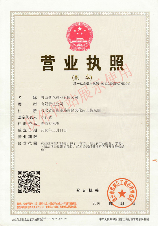 唐山荷花種業(yè)有限公司始創(chuàng)于1984年,一直秉承“科技為先,誠(chéng)信為本”的發(fā)展指導(dǎo)戰(zhàn)略,注冊(cè)商標(biāo)“荷花”牌,經(jīng)過(guò)三十多年的發(fā)展,建立了從親本選育、試驗(yàn)示范、生產(chǎn)檢驗(yàn)、精選加工、推廣銷(xiāo)售及農(nóng)業(yè)技術(shù)咨詢一體化的經(jīng)營(yíng)體系,目前擁有試驗(yàn)基地、繁育基地、制種基地、及規(guī)模化種子冷貯藏庫(kù),完善了由科研、檢驗(yàn)、生產(chǎn)、銷(xiāo)售各個(gè)配套環(huán)節(jié)。荷花牌系列種子正是我們?cè)趫?jiān)持“誠(chéng)信、品質(zhì)、開(kāi)拓、創(chuàng)新”的企業(yè)精神下打造的種子品牌,如今,在全國(guó)已形成強(qiáng)勢(shì)品牌效應(yīng),是一個(gè)值得信賴與具有一定影響力的種子品牌,在全國(guó)廣大用戶中贏得了良好的口碑和信譽(yù)... ...